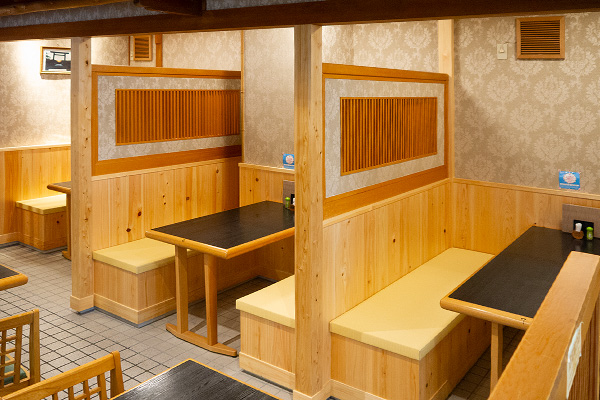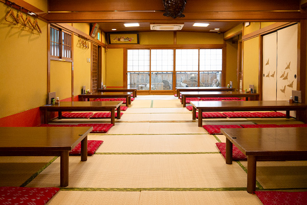 二階はお座敷食堂となっております。テーブル席と個室もございます。